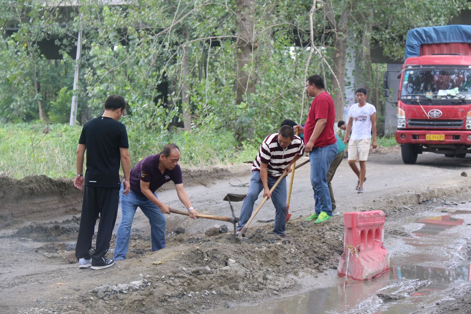 活动中,大家不嫌脏不怕累,将泥土和沙石填置到低洼损坏的路坑中,有的同志为提高效率,甚至徒手搬运砖石和土块。不到1小时,坑洼的路面被修复平整。此次活动,不仅提升了公司形象,更以实际行动了践行“两学一做”。