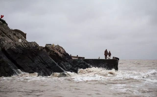 2017年2月21日,王继才夫妇站在江苏开山岛的码头