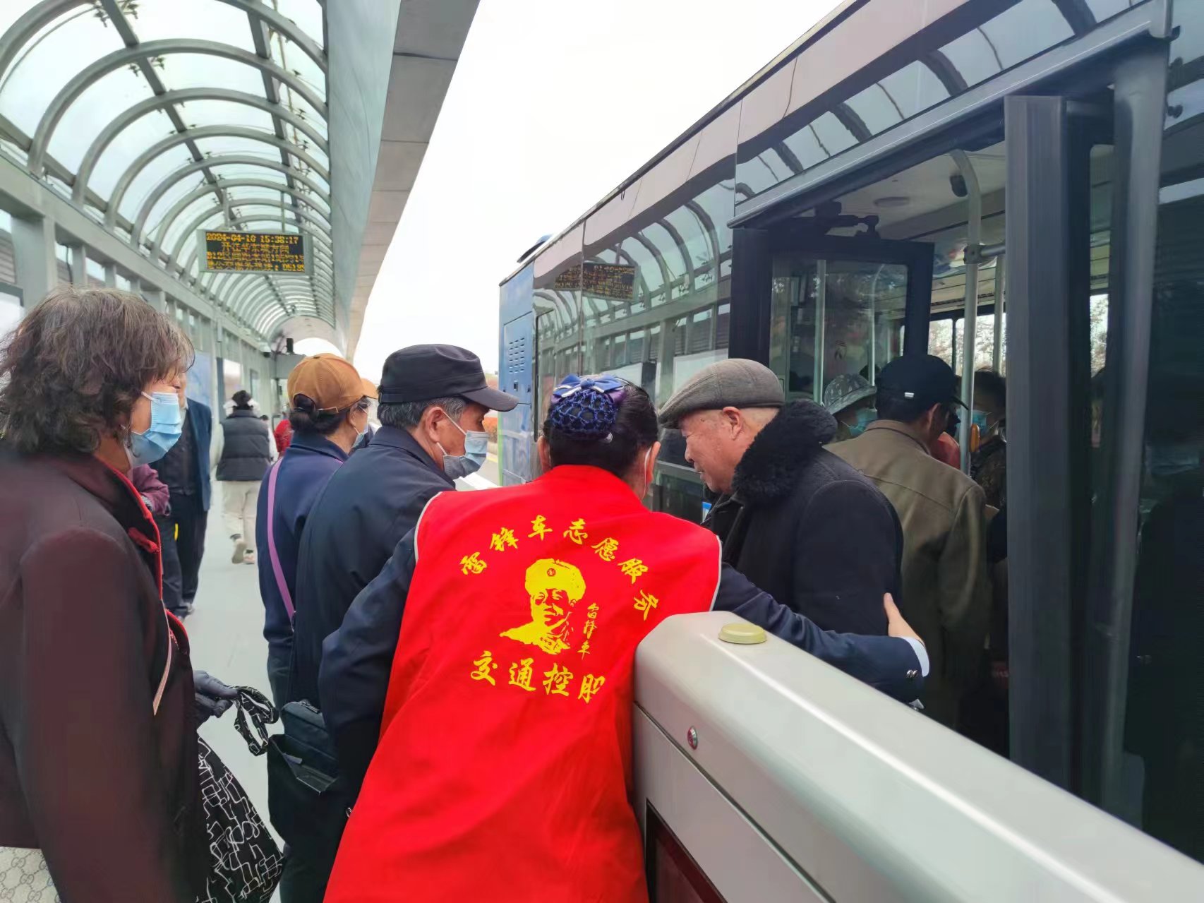 为了应对客流高峰,公交集团在五羊路、出口加工区、朝阳以及体育中心等大客流站点部署了机动运力,随时准备应对突发情况。此外,朝阳及周边站台增加了站务员,他们不仅为老年乘客提供温馨的帮助,还实时与管理人员和调度员沟通现场客流情况,确保公交运营的高效与顺畅。