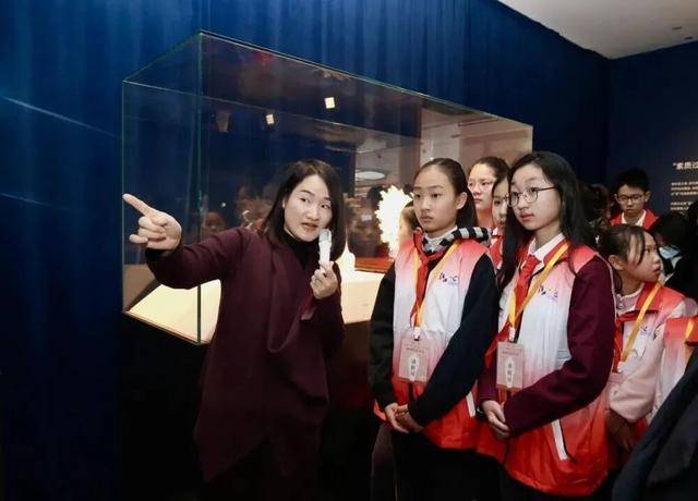 策展人(ren)项苙(ji)苹为徐汇(hui)区“新时代好少年”讲授员们介绍每一件展品